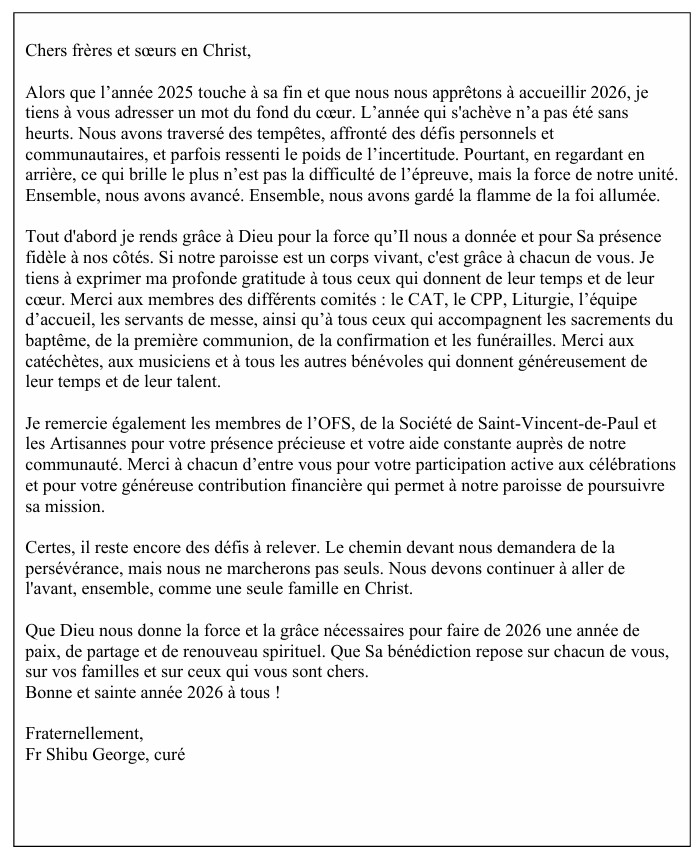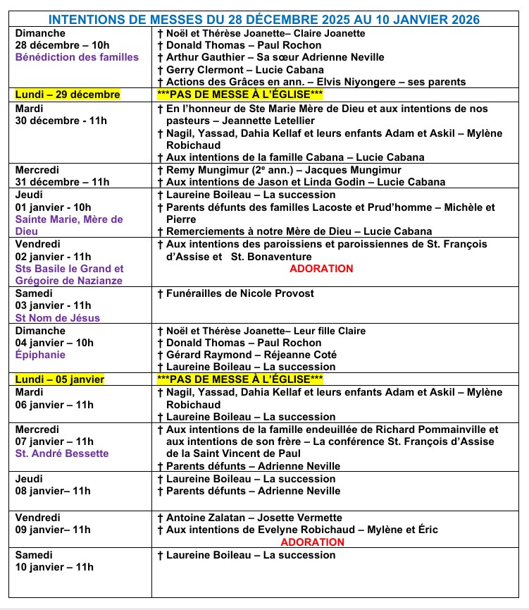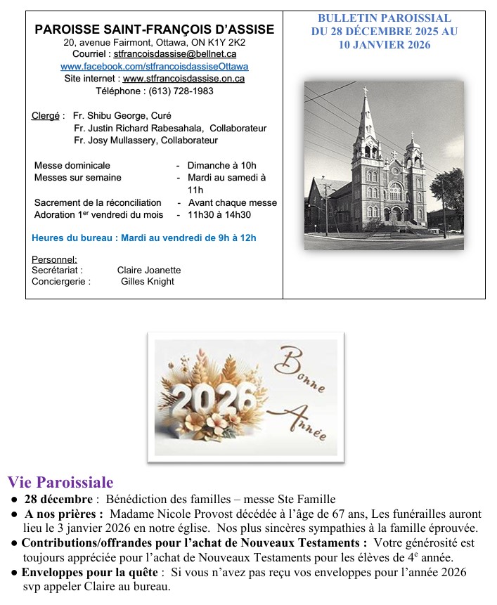 Bulletin paroissial du 28 décembre 2025 au 10 janvier 2026
