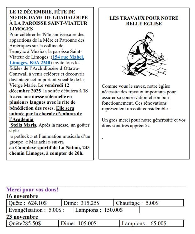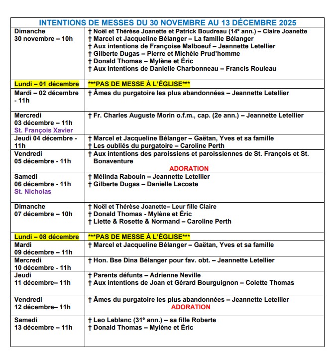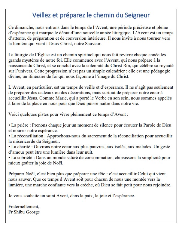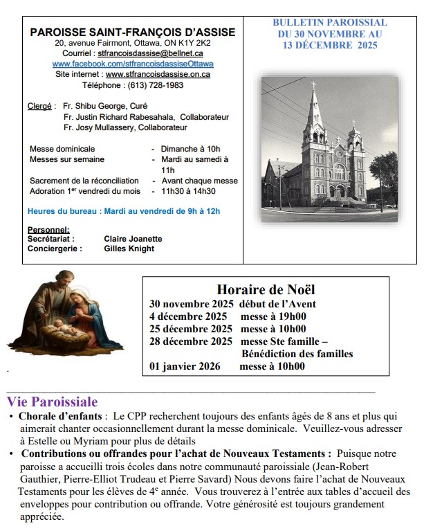 Bulletin paroissial du 30 novembre au 13 décembre 2025