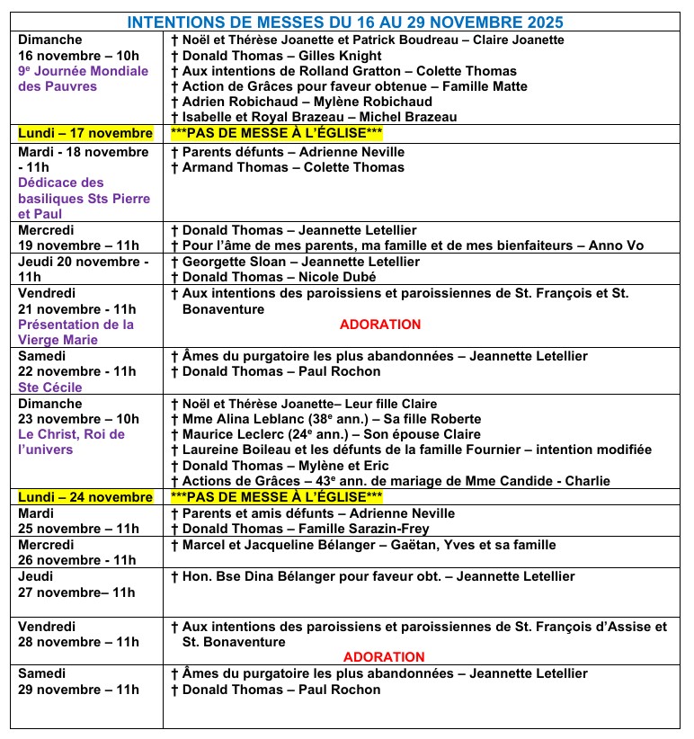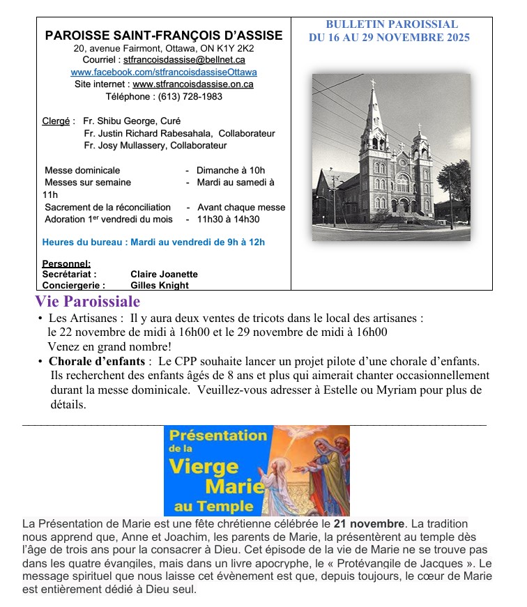 Bulletin paroissial du 16 au 29 novembre 2025