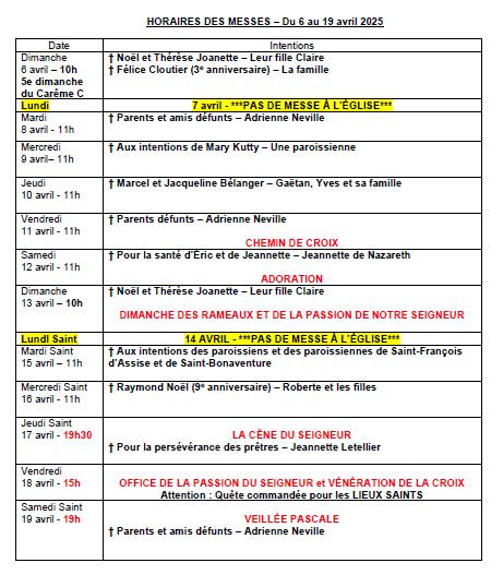 Horaire des Messes
