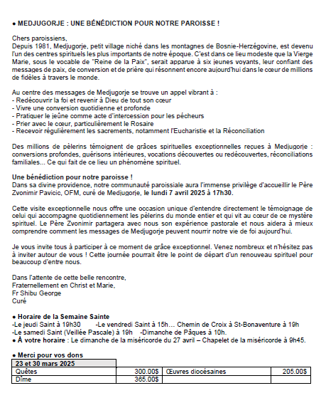 Bulletin paroissial du 6 au 19 avril 2025