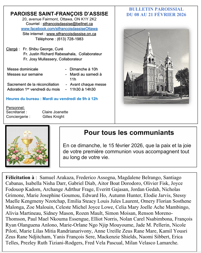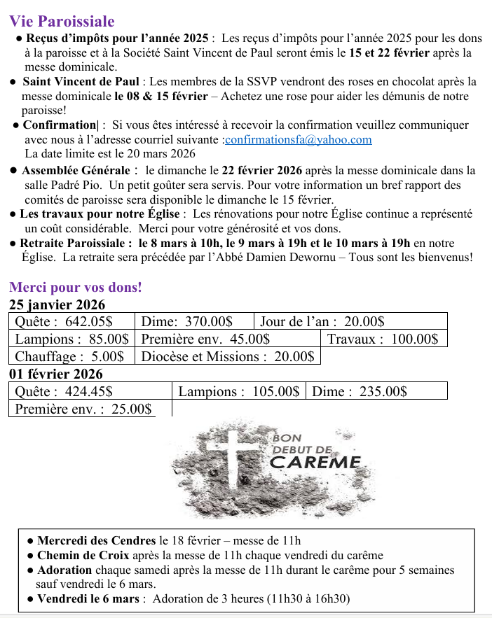 Bulletin paroissial du 8 au 21 février 2026