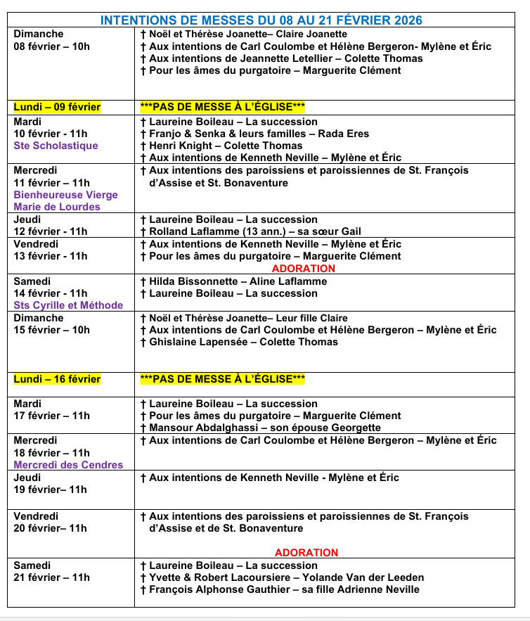 Horaire des Messes