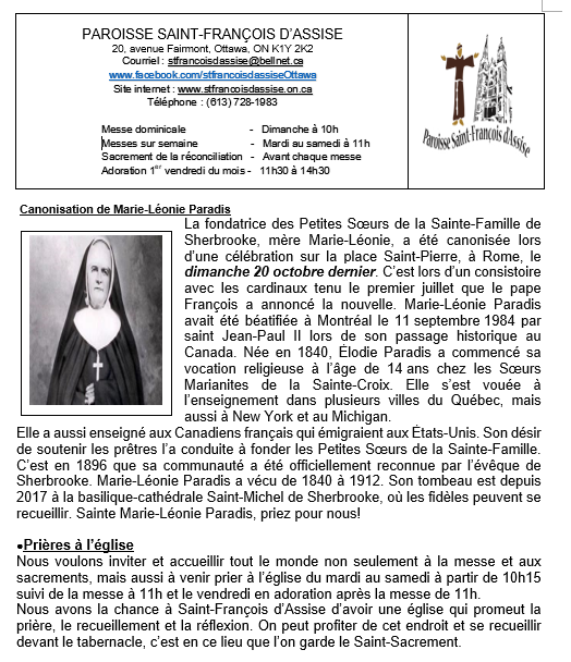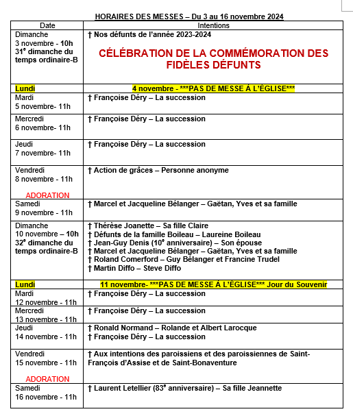 Horaire des Messes